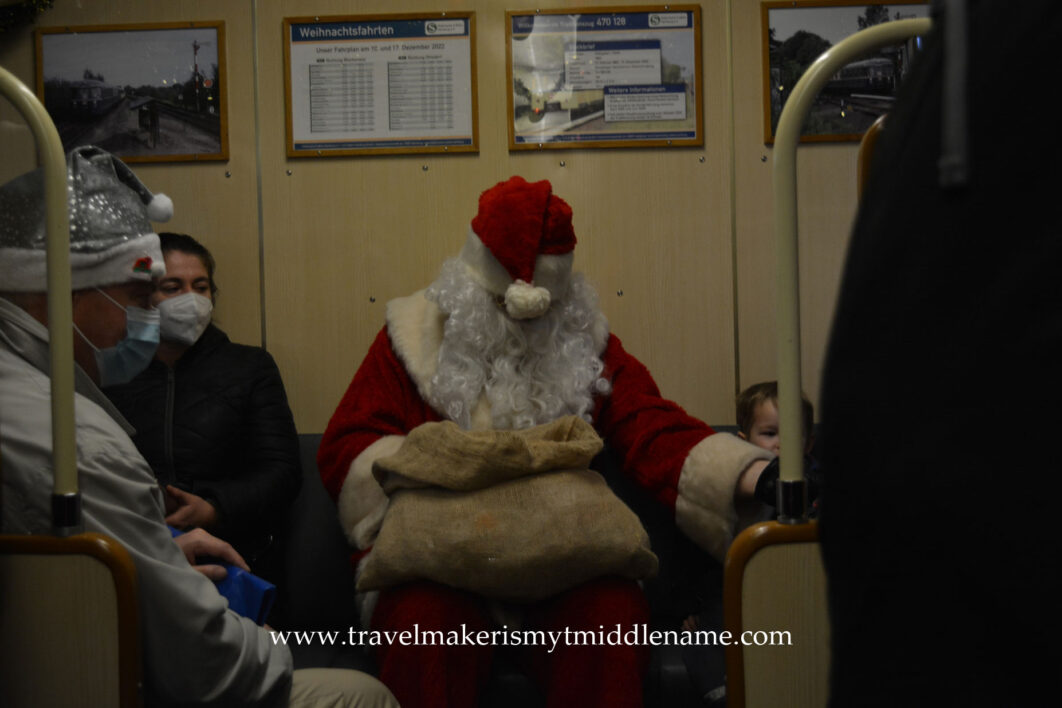 Every year at Christmas, there is a “Hamburg historical Christmas train” that loops around the city center of Hamburg. This is a special 3-car old style train with a vintage appearance, both in and out. The train is decorated with Christmas decorations and you can buy tea and jam donuts on board. Santa also visits the train and hands out presents to small children. The cars are also separated into first and second class, but only as a novelty.